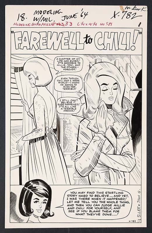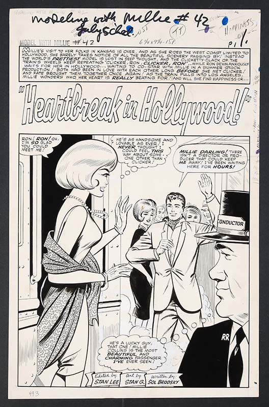MyComicShop has added several new original art listings to their website. First up is an Invincible sketch by Ryan Ottley which pops on the yellow paper. They have several complete 18-page stories from Modeling With Millie by Stan Goldberg, the standout being a glamorous story about Millie trying her hand at Hollywood stardom. Coming soon are some pieces by modern master Frank Quitely including a head sketch of Apollo and a page from Jupiter’s Legacy #3.