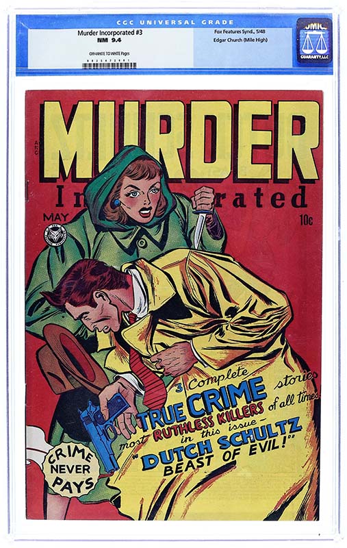 Comics that will be added to the site soon include several high grade Golden Age finds from the Edgar Church/Mile High collection faeturing some pre-code goodies like Crimes by Women #10 and Murder Incorporated #3. All of the latest additions will appear on MyComicShop’s New Listings page as soon as they go live.