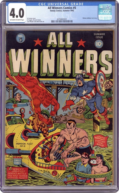 They’ve also added All Winners Comics #5 CGC 4.0 with an Al Avison cover featuring the full Invaders lineup fighting Nazis and Fantastic Fears #5 GD+ which features Steve Ditko’s first published story.