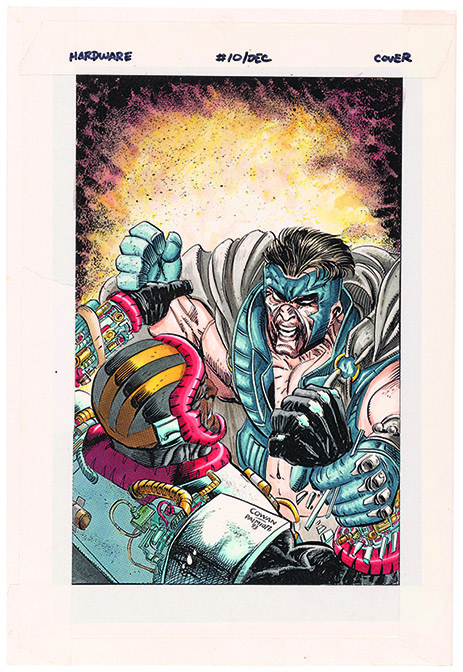 Scoop: On the cover for Hardware #1, you utilized what looks like brown as the dominant background color. 20-25 years earlier, that was something that happened more frequently, but in the ‘90s that was rare. This cover really stood out. How did you come up with that approach?