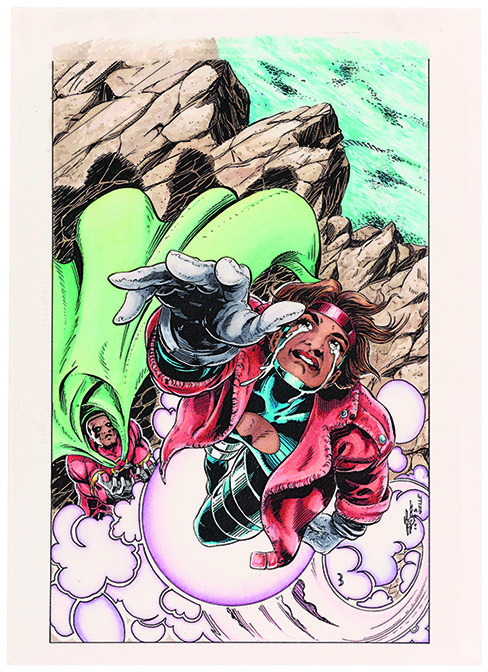 Giddings continues to work in comics, including 2023’s Milestone 30th Anniversary Special #1. She has recently been working on a series of large scale paintings that represent her painted color pages from the bygone era of pre-computer classic colored comics. An ongoing labor of love, they can be seen in an article in American Art Collector Magazine issue 213) and the RJD Gallery, which represents her “The Lost Art” paintings.