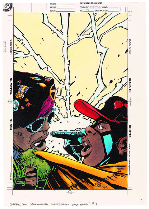 Scoop: While many of the covers – like a lot of superhero comics – use darker colors, Static #7 went the opposite direction. I remember it standing out on the racks at the time. Was there any different thought in that one when you were working on it?