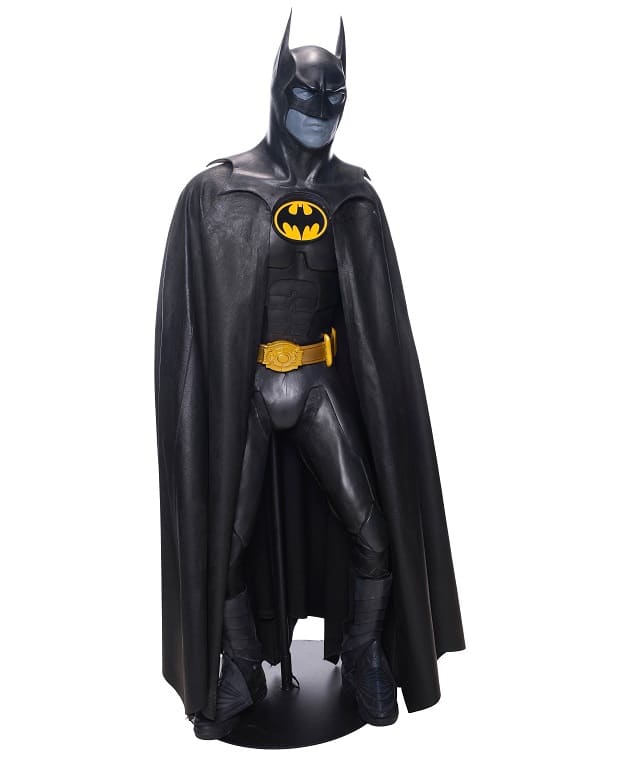 Conan’s (Arnold Schwarzenegger) Atlantean sword and four behind the scenes photos from Conan the Barbarian reached $176,400. A screen-matched light-up Zorg Industries “Rocket Launcher” ZF-1 from The Fifth Element brought $176,400. Charlie Chaplin’s screen and photo matched Little Tramp boots from The Great Dictator sold for $157,500. Batman’s (Michael Keaton’s) Batsuit on display from Batman Returns realized $157,500.