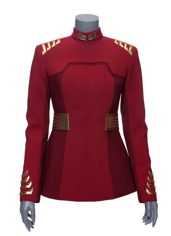 The auction includes Michael Burnham’s Breen light-up disguise costume, 32nd century Starfleet command uniform, and admiral jacket. Captain Christopher Pike’s (Anson Mount) away mission costume, Dr. Kovich’s (David Cronenberg) broken bridge mission costume, and L’Rell’s (Mary Chieffo) white armor costume are offered.