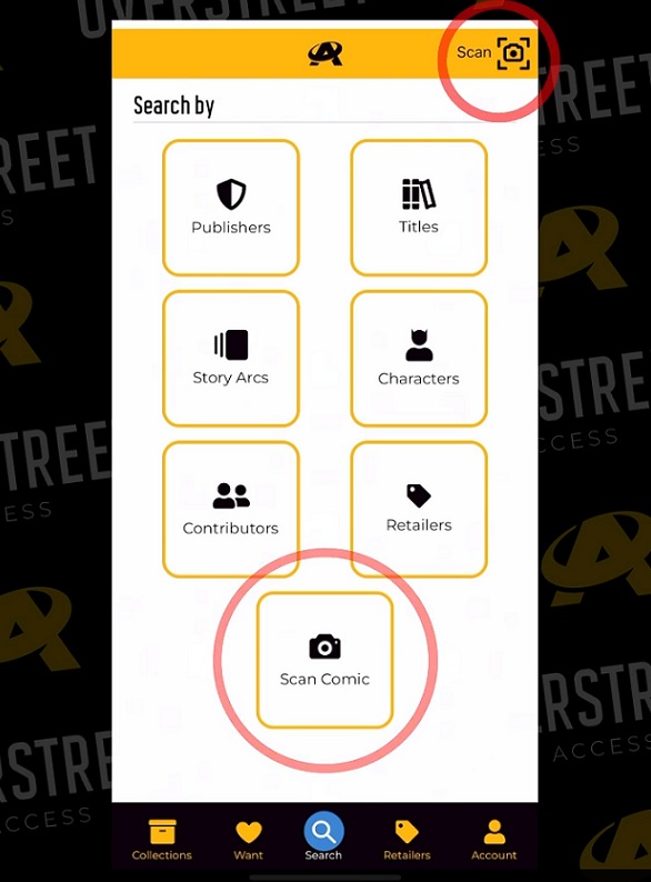 The Overstreet Access app and mobile browser makes finding comics a quick and easy process with the image scanner. Just take a picture of a comic book cover and the app will find the issue.