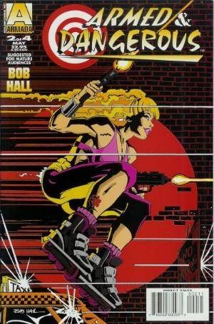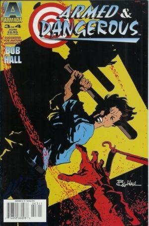 Armed & Dangerous was originally a four-issue black and white limited series written and illustrated by veteran comic book artist Bob Hall (Shadowman) and published by Acclaim Comics under their Armada imprint from April through July 1996. It was followed by the Armed & Dangerous Special #1 in August, and another four-issue miniseries, Armed & Dangerous: Hell’s Slaughterhouse, which ran October 1996 through January 1997.