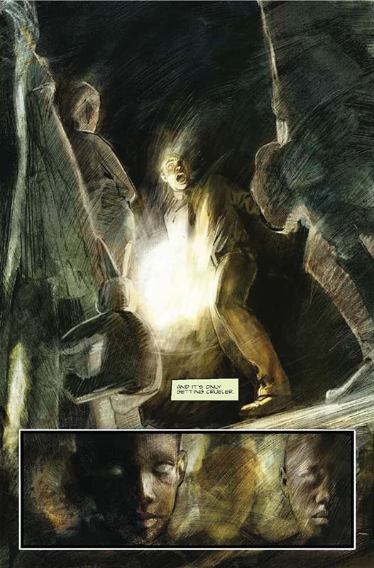 “The best kinds of horror stories challenge us to not only confront ghosts or monsters, but also grapple with the pain and terror we inflict on each other. Sometimes that torment lasts only moments, or, as is the case of Crownsville, it can span decades,” Oni President & Publisher Hunter Gorinson said. “Together, Rodney and Elia have zeroed in on a masterfully, deeply rendered story that can both induce spiraling, white-knuckle terror and confront the tortured past underpinning a shocking and all-too-true chapter of modern American history.”