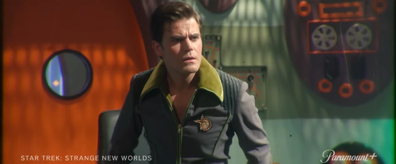 The teaser promises 10 new adventures, romance, mystery, and “a touch of analog.” It begins with James Kirk (Paul Wesley) and others sporting a very retro look. Then Captain Christopher Pike (Anson Mount) kicks things into action and we see Spock (Ethan Peck) and Christina Chong (La’an Noonien-Singh) in what appears to be a holodeck.