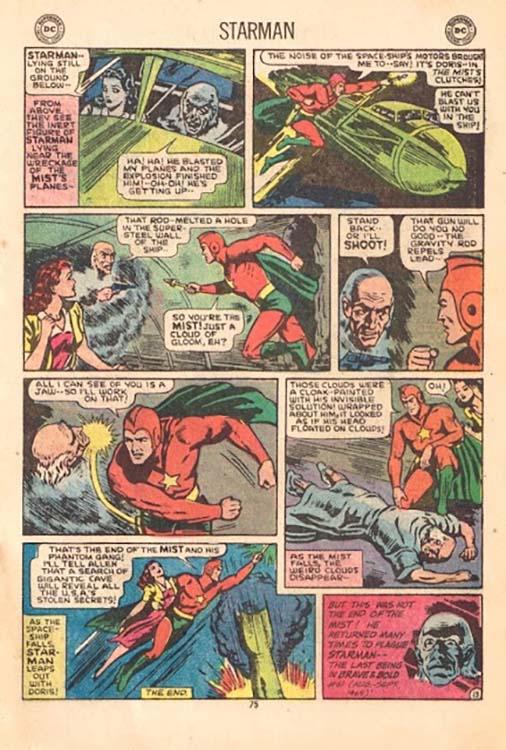 Ted created the rod to be used as a power source until his cousin Sandra Knight – who was also the Phantom Lady – suggested that he use it to fight crime instead. Starman’s first outing saw him fighting Dr. Doog, who planned to use his Ultra-Dynamo weapon to take over the world. To create a cover for himself, Ted pretended to be a man about town with little ambition and a carefree attitude.