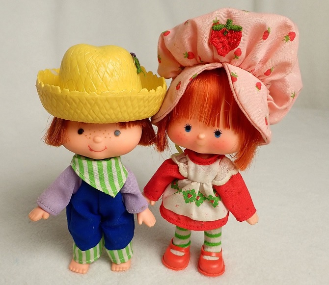 Strawberry and her friends drew immense popularity for girls in the 1980s. Each one was individualized by having their own fruit and dessert themed name and matching clothes as well as similar themed pets. Her friends Raspberry Tart, Huckleberry Pie, Apple Dumplin, and Plum Puddin’ were all introduced in 1980 along with her enemy the Peculiar Purple Pie Man.