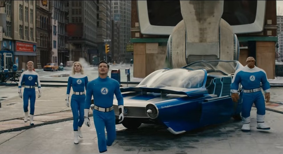 Johnny Storm (Joseph Quinn) chases her into space, but is easily sent back to Earth. Reed Richards (Pedro Pascal) starts working on a solution to the problem and the team tries to comfort the frightened public. Then we see the Fantastic Four displaying their powers, including the Thing (Ebon Moss-Bachrach) running through pillars outside of a building. The trailer ends with an ominous teaser shot of Galactus with a very large foot walking through the city.