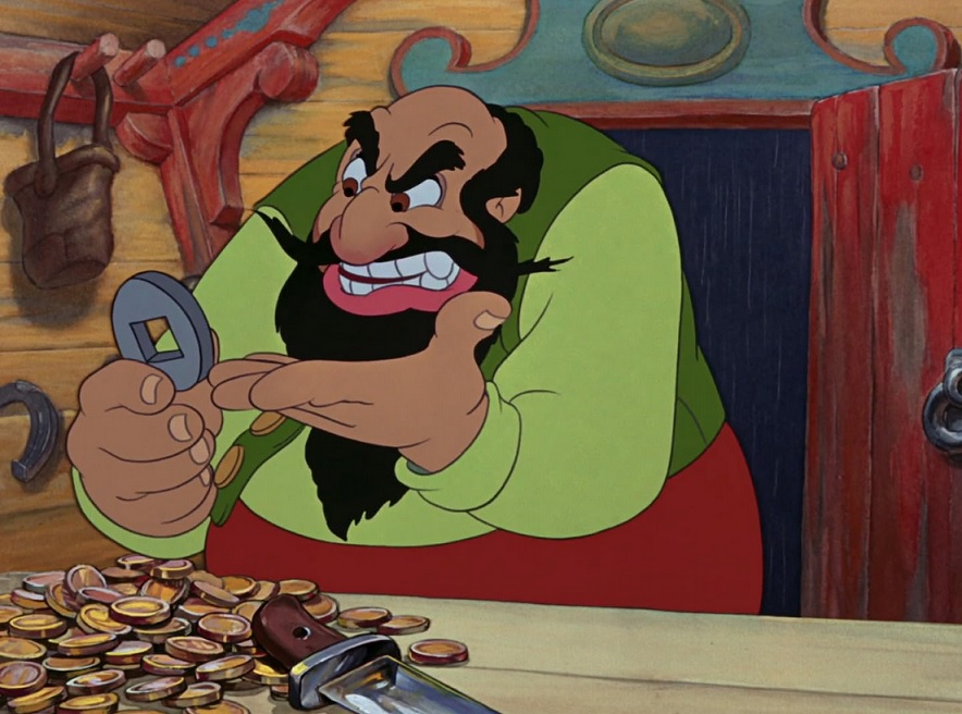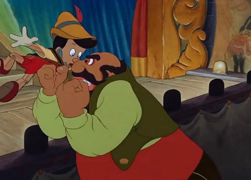 To money-hungry Stromboli, Pinocchio is his “little wooden gold mine,” said in Stromboli’s Italian accent, of course! After he purchases Pinocchio from Honest John, Stromboli puts the puppet boy to work on the stage and on display at carnivals, where he plans to keep Pinocchio until he is too old to continue performing. When that happens, Pinocchio will join Stromboli’s other worn-out puppets as firewood!