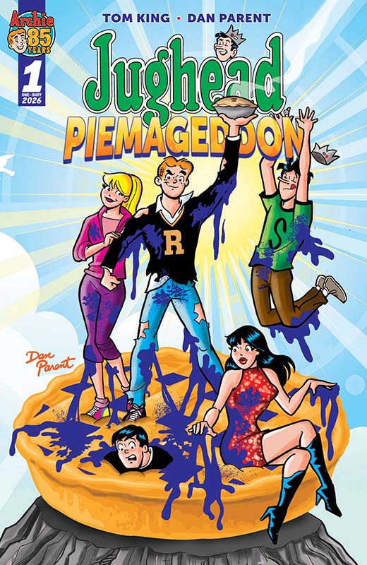 Tom King, the writer behind Supergirl: Woman of Tomorrow, and Archie Comics stalwart artist Dan Parent are reuniting for Jughead: Piemaggeddon. The special one-shot will star Archie’s best buddy, his bottomless pit of a stomach, and a pie-eating contest “with far-reaching consequences in a slapstick adventure,” according to Archie Comics’ press release.