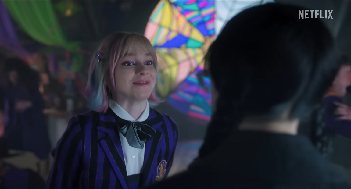 The Addams family arrives at Nevermore at the start of the new semester, where Wednesday (Jenna Ortega) is quickly greeted by the new principal (Steve Buscemi) and a gaggle of girls that want her autograph. After scenes that tease the magic of the school, Wednesday has an unsettling vision (complete with black tears) that prophesizes the death of Enid (Emma Myers) and that it will be Wednesday’s fault.