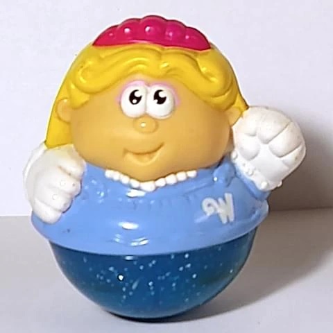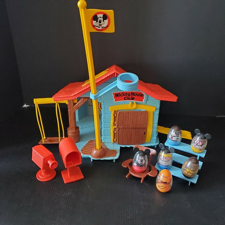 The Weeble first hit the market in 1971 as a part of Milton Bradley’s Playskool line, and continued under Playskool after Hasbro acquired the subsidiary in 1984. Many themed versions of the Weeble have been released over the years including a playground, circus, western, haunted house, camper, and licensed versions based on the Mickey Mouse Club and Tarzan.