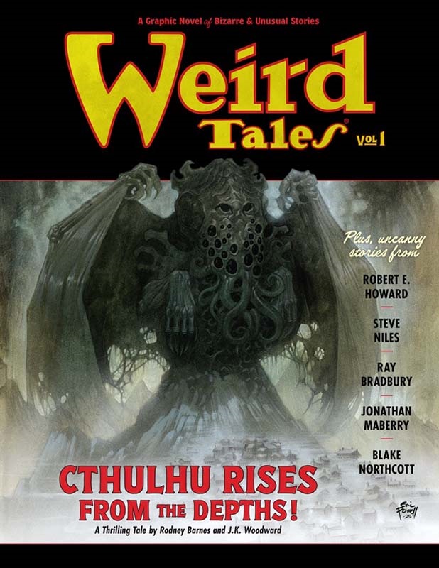 Bradbury’s “The Scythe” adapted by Weird Tales editor Jonathan Maberry and artist J.K. Woodward, Allison V. Harding’s “The Damp Man” adapted by Nancy A. Collins and artist Marco Finnegan, and an original Lovecraft mythos story by screenwriter and producer Rodney Barnes and artist Lukas Ketner are in the book.