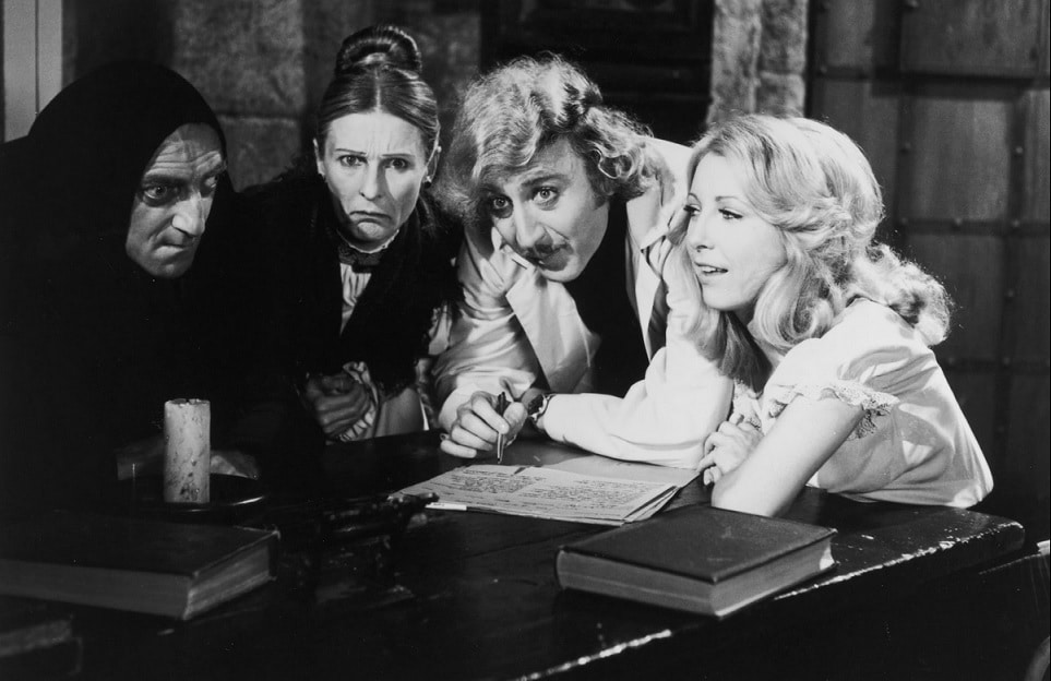 The black and white comedy starred Wilder as Dr. Frederick Frankenstein, the grandson of Victor Frankenstein. The movie opens with Frederick learning that he has inherited his grandfather’s estate in Transylvania. Once there, he decides to follow in his grandfather’s footsteps by reanimating the dead. He is helped by his assistants Inga (Teri Garr) and Igor (Marty Feldman), and the tough housekeeper Frau Blücher (Cloris Leachman). Frederick is able to waken his monster (Peter Boyle) and things get sillier and sillier – including a musical number with the creation and a visit from the doctor’s fiancée, Elizabeth (Madeline Kahn).